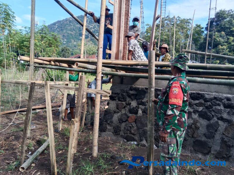 Ende, – Babinsa Koramil 1602-04/Maurole, Sertu Clementino P. Da Silva, melaksanakan kegiatan Pamwil, Komsos, dan Karya Bhakti di Dusun 1, Desa Kanganara, Kecamatan Detukeli, Kabupaten Ende. Kegiatan ini dilakukan untuk membantu warga dalam pengerjaan rumah layak huni sekaligus memantau keamanan wilayah binaan.