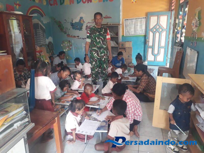 “Pada masa ini anak-anak belajar dengan cara bermain, hal ini merupakan konsep yang diajarkan kepada anak sesuai dengan usia perkembangan mereka hal ini karena anak merupakan generasi penerus yang harus kita persiapkan kedepannya” jelas Babinsa Duarte.
