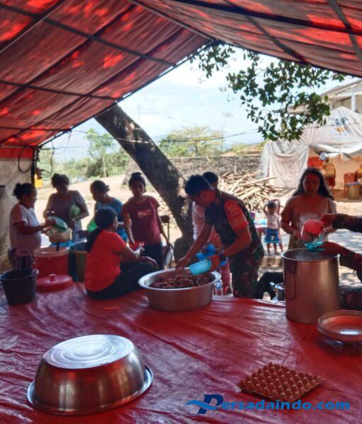 Kegiatan sosial ini merupakan bentuk kepedulian Babinsa terhadap masyarakat terdampak bencana yang saat ini masih berada di lokasi pengungsian. Dalam pelaksanaannya, Babinsa berkoordinasi dengan aparat desa dan relawan setempat untuk memastikan seluruh pengungsi mendapatkan bantuan makan siang secara merata.