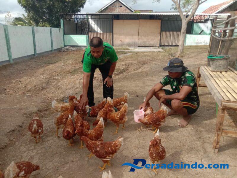 Selain memanen hasil kebun, kegiatan juga dilanjutkan dengan penanaman kembali bibit sayuran untuk menjaga kesinambungan produksi pangan sehat. Pasi Ter Kodim 1614/Dompu turut berperan aktif dalam memberikan pendampingan teknis, termasuk pemberian pakan ayam petelur yang menjadi bagian dari program Edugarden Wirabakti sebagai sarana edukasi dan kemandirian pangan keluarga prajurit.