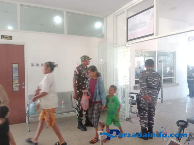 Babinsa Koramil 1602-01/Ende, Serda Jakaria Ahmad, bersama personil Angkatan Laut Ende, anggota KP3 Laut Polres Ende, petugas Karantina, KKP Kabupaten Ende, Pelindo Ende, dan staf Pelni Ende hadir mengawasi proses bongkar muat serta keberangkatan kapal.