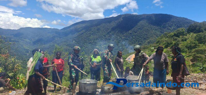 Puncak Jaya, Papua – Di tanah yang sejuk dan penuh dengan kearifan tradisi, Prajurit Satgas Yonif 743/PSY Pos Ramil Yambi bersama masyarakat Distrik Yambi menggelar acara bakar batu, Rabu (10/09/25). Asap putih yang membumbung dari tumpukan batu panas itu menjadi lambang persaudaraan, kebersamaan, dan cinta kasih yang kian erat di pegunungan Papua.