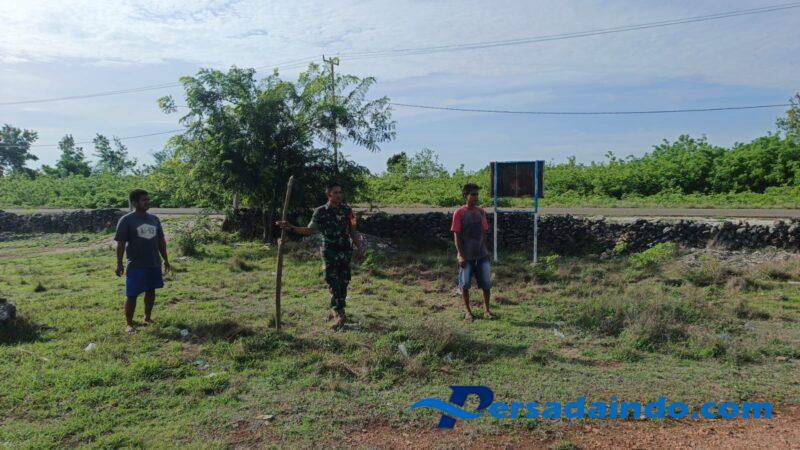 NTT- Sumba Timur.Babinsa Koramil 05/Waingapu Kodim 1601/Sumba Timur, Sertu Armando Ndahawali, bersama Kepala Desa Napu dan pengurus Koperasi Merah Putih melaksanakan kegiatan pengukuran serta pemasangan patok batas lahan koperasi yang berlokasi di Desa Napu, Kecamatan Haharu, Kabupaten Sumba Timur, pada Senin (24/11/2025).