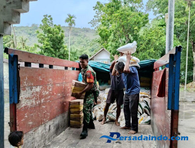 NTT – Sumba Timur. Dalam rangka mendukung kelancaran penyaluran bantuan pangan kepada masyarakat, Babinsa Koramil 02/Rindi Umalulu Kodim 1601/Sumba Timur, Pratu Dendi Djami, melaksanakan pendampingan pendropingan bahan pangan berupa beras dan minyak goreng bertempat di Desa Tamburi, Kecamatan Rindi Umalulu, Kabupaten Sumba Timur, Rabu (03/12/2025).