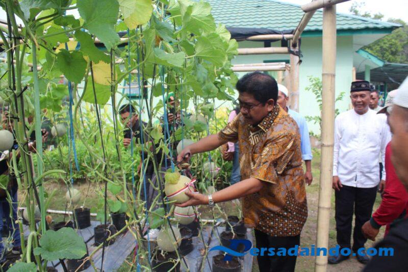 “Lahan kosong di samping rumah jabatan ini kita manfaatkan untuk menanam melon. Alhamdulillah, panen perdana ini hasilnya cukup memuaskan, ujar Letkol Arh. Doman Endro Pramono.