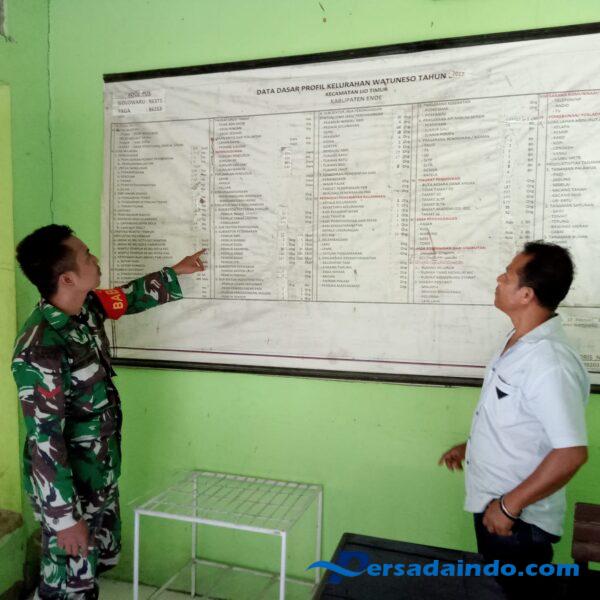 Ende — Babinsa dari Kodim 1602/Ende melakukan kegiatan Pengumpulan Data Terpadu (Puldata ter) dan Pengamanan Wilayah (Pamwil) di Kelurahan Watuneso, Kecamatan Lio Timur, Kabupaten Ende pada Selasa pagi.15 Agustus 2025.