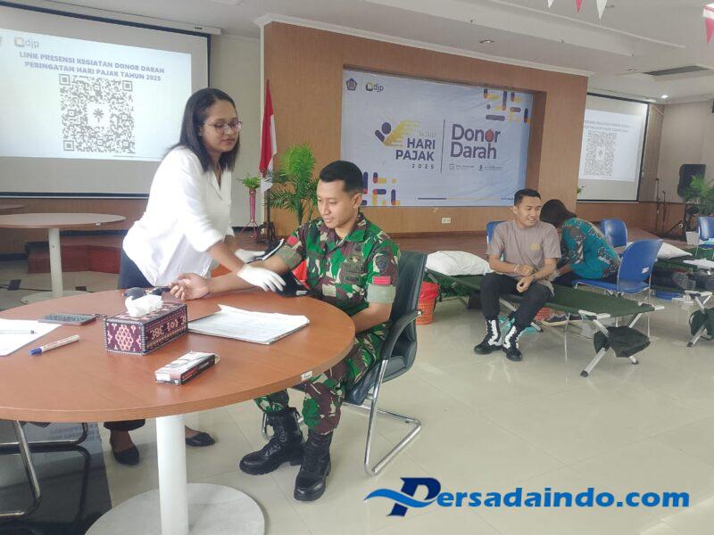 NTT – ENDE, Sebagai bentuk serta wujud peduli kemanusiaan, Kodim 1602/Ende kerahkan personelnya mengikuti kegiatan donor darah. Dalam rangka Hari Pajak yang digelar oleh Kantor pajak Jalan Eltari Kabupaten Ende, Rabu (09/07/2025).