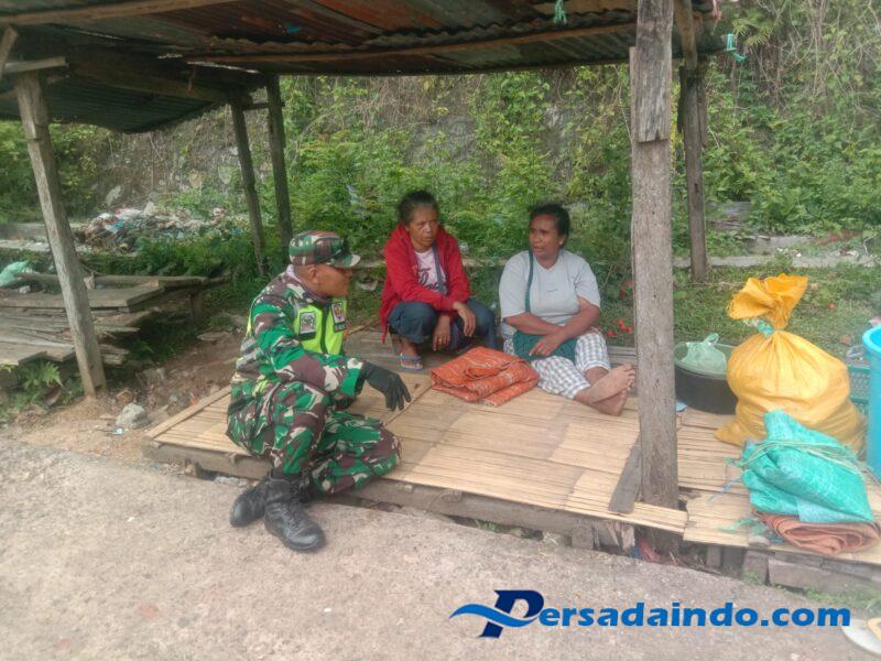 Ende, Babinsa Koramil 1602-02/Wolowaru, Sertu Lukman, melaksanakan kegiatan Komunikasi Sosial (Komsos) dan Pengamanan Wilayah (Pamwil) di Pasar Moni, Desa Koanara, Kecamatan Kelimutu, Kabupaten Ende, Sabtu pagi pukul 10.19 Wita hingga selesai.