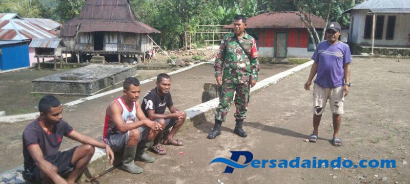 Ende, Babinsa Koramil 1602-02/Wolowaru, Sertu Arnoldus Seba, bersama dengan masyarakat Kelurahan Watuneso, Kecamatan Lio Timur, Kabupaten Ende, melaksanakan kegiatan Komunikasi Sosial (Komsos) dan Pengamanan Wilayah (Pamwil) pada Minggu pagi, pukul 08.30 WITA.