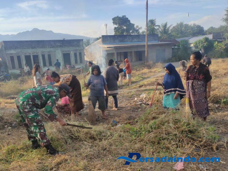 NTT-SIKKA. Babinsa Koramil 1603-04/Kewapante Kodim 1603/Sikka, Sertu Dedi Setiabudi, melaksanakan kegiatan karya bakti pembersihan di lapangan eks Pasar Geliting, Kecamatan Kewapante, Kabupaten Sikka. Kegiatan ini dilakukan sebagai bentuk kepedulian TNI terhadap kebersihan dan kelestarian lingkungan yang ada di wilayah binaan, Selasa(14/10/2025).