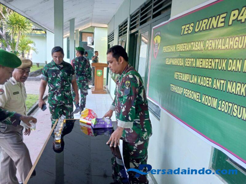 NTB – Sumbawa Besar, Dalam upaya mendukung program Pencegahan, Pemberantasan, Penyalahgunaan, dan Peredaran Gelap Narkoba (P4GN), Kodim 1607/Sumbawa melaksanakan kegiatan tes urine secara menyeluruh bagi personel TNI dan PNS jajaran Kodim. Kegiatan ini juga dirangkai dengan pembinaan serta peningkatan keterampilan kader anti narkoba guna memperkuat ketahanan internal terhadap ancaman bahaya narkoba. Kegiatan ini dilaksanakan di Makodim 1607/Sumbawa pada Senin (30/06/2025).
