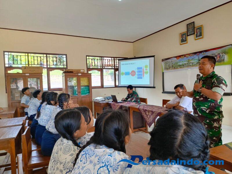 Buleleng, Bali — Kodim 1609/Buleleng menggelar kegiatan penyuluhan bela negara dan cinta tanah air di SMPN 5 Depeha, Rabu (14/5). Bertempat di Ruang Lab. IPA sekolah yang berlokasi di Banjar Dinas Bingin, Desa Depeha, Kecamatan Kubutambahan, kegiatan ini merupakan bagian dari program nonfisik TNI Manunggal Membangun Desa (TMMD) ke-124.