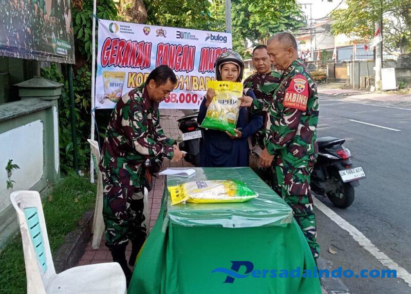 BALI – Denpasar, Dalam rangka perayaan Hari Ulang Tahun Kemerdekaan Republik Indonesia yang Ke-80, Kodim 1611/Badung melalui Koramil 1611-01/Dentim, Yang di pimpin oleh Danramil 1611-01/Dentim Kapten Inf I Wayan Suara, menyelenggarakan Gerakan Pangan Murah. Kegiatan ini bertempat di Jln. Melati Depan Kantor Koramil 1611-01/Dentim. Sabtu, (23/08/2025).