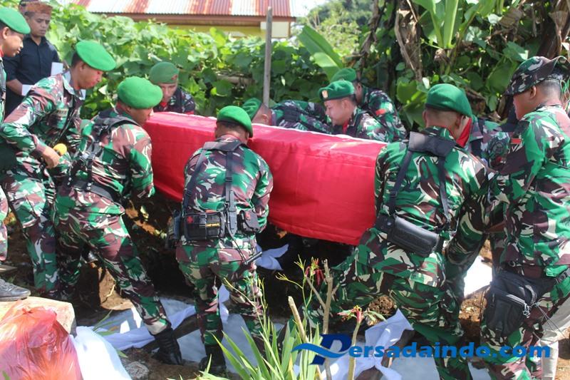 Prosesi diawali dengan penghormatan militer, dilanjutkan pengalungan bendera Merah Putih kepada keluarga, hingga penyerahan jenazah ke liang lahat yang diiringi tembakan salvo sebagai penghormatan terakhir.