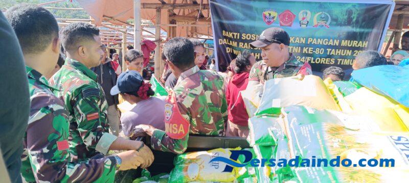 Wulanggitang – Dalam rangka memperingati Hari Ulang Tahun ke-80 Tentara Nasional Indonesia (TNI), Kodim 1624/Flores Timur melalui Koramil 1624-06/Wulanggitang menggelar kegiatan bakti sosial berupa Gerakan Pangan Murah, Senin (15/09/2025).