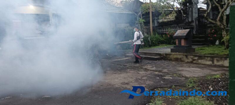 Untuk mengantisipasi hal tersebut, hari ini dengan berkolaborasi bersama Puskesmas Klungkung II, kita lakukan fogging di area Makodim dan asrama prajurit. Fogging ini kita lakukan untuk mencegah serta mengendalikan penyebaran nyamuk dewasa,”ucapnya.