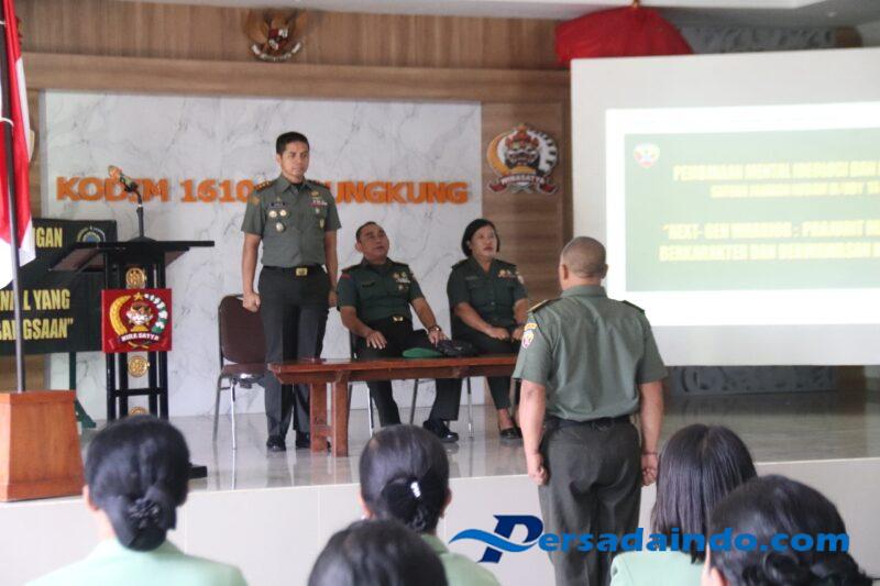 Klungkung,- Mengusung tema “ Next- Gen Warrior, Prajurit Milenial Yang Berkarakter Dan Berwawasan Kebangsaan “, Kodim 1610/Klungkung menerima Pembinaan Mental idiologi Dan Kejuangan dari Bintaldam IX/Udayana, Rabu ( 30/04/25 ).