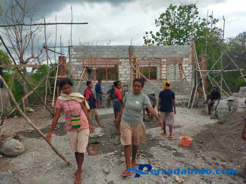 NTT-KUPANG, – Dengan semangat membara, Tim Tukang Kodim 1604/Kupang yang dipimpin Serka Bambang Sudarsono bersama anggota Satgas RI-RDTL dari Yon Arhanud 2/Kostrad terus menggenjot pembangunan SMPN Oepoli di Desa Netemnanu Utara, Kecamatan Amfoang Timur. Tidak hanya personel TNI, ibu-ibu warga Oepoli pun turut berperan aktif dengan membantu mengangkat campuran material untuk mempercepat proses pekerjaan pada Selasa, 24 November 2025. Kehadiran mereka menjadi bukti nyata kuatnya semangat kebersamaan dalam mendukung pembangunan fasilitas pendidikan di wilayah perbatasan.