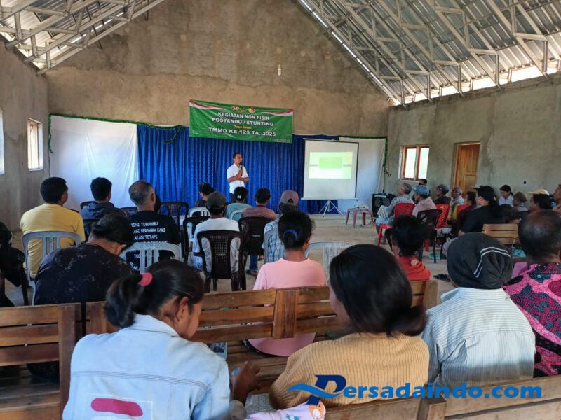 Kegiatan Penyuluhan Posyandu dan Stunting sebagai salah satu sasaran non fisik pada pelaksanaan program TMMD ke 125 Kodim 1605/Belu ini berlangsung di Gedung Gereja GBI Marantha Dusun Mauulun, Desa Naekasa, Kecamatan Tasifeto Barat, Kabupaten Belu, Kamis (14/8/2025).