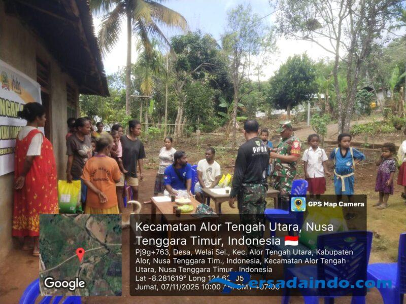 Alor, 7 November 2025 – Babinsa Koramil 1622-04/Apui, Sertu Mujahidin bersama rekannya Sertu Yopinus Kalawali, melaksanakan kegiatan penyaluran beras murah program SPHP (Stabilisasi Pasokan dan Harga Pangan) atau Gerakan Pangan Murah di Kampung Mainang, Desa Fuisama, Kecamatan Alor Tengah Utara. Kegiatan ini bertujuan membantu masyarakat memperoleh bahan pangan pokok dengan harga terjangkau.