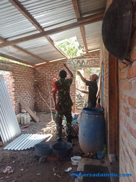 Dalam kegiatan tersebut, Babinsa turut serta membantu secara langsung proses pemasangan atap rumah bersama warga sekitar. Kehadiran Babinsa di tengah masyarakat ini merupakan bentuk kepedulian dan upaya mempererat hubungan antara TNI dengan masyarakat di wilayah binaannya.