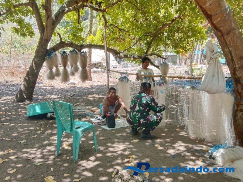 Dalam kegiatan tersebut hadir Bapak Kasman Telu selaku tuan rumah beserta keluarga, bersama Babinsa Serda Rahmad Bao yang turut serta membantu menjahit jaring ikan. Melalui interaksi langsung ini, Babinsa dapat menyerap berbagai aspirasi masyarakat sekaligus memberikan motivasi agar terus bekerja keras meningkatkan kesejahteraan keluarga.