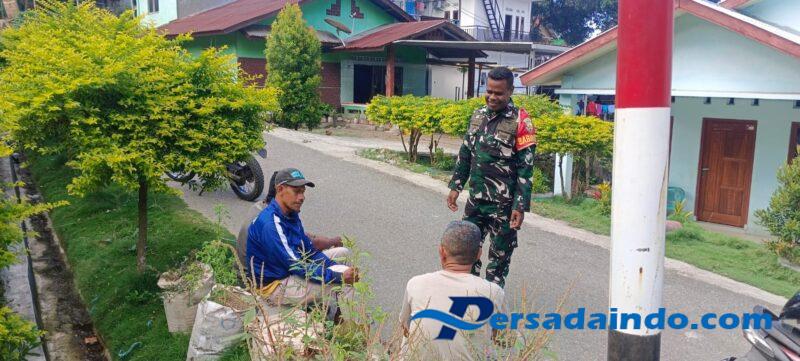 Kegiatan tersebut berlangsung di tengah kondisi cuaca hujan berkepanjangan. Babinsa Kopda Imanuel Lobang memantau situasi wilayah binaan sekaligus memberikan himbauan kepada masyarakat agar selalu berhati-hati dan menjaga faktor keamanan dalam aktivitas sehari-hari.