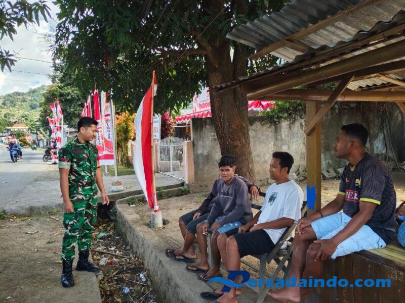 Ende, — Babinsa Koramil 1602-01/Ende melaksanakan kegiatan Komunikasi Sosial (Komsos) dan Pengamanan Wilayah (Pamwil) di Kelurahan Rewarangga Selatan, Kecamatan Ende Timur, Kabupaten Ende. Kegiatan ini berlangsung mulai pukul 09.30 WITA hingga selesai dan bertujuan untuk menjaga kondusifitas keamanan dan ketertiban masyarakat di wilayah binaan.21 Agustus 2025.