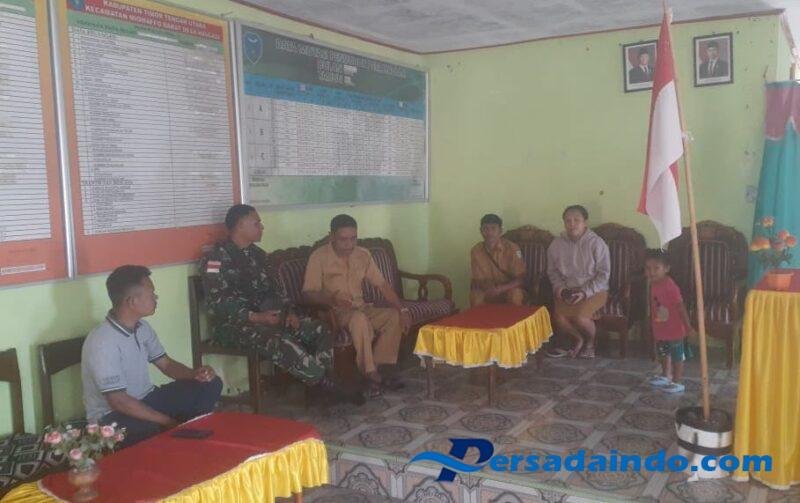 NTT-Kefamenanu., Selasa, 29 Juli 2025., Sebagai bentuk komitmen dalam menjalankan tugas pembinaan teritorial, Babinsa Koramil 1618-02/Miobar, Serda Seldis Nautani melaksanakan kegiatan komunikasi sosial (komsos) bersama perangkat Desa Haulasi, Kecamatan Miomaffo Barat, Kabupaten Timor Tengah Utara (TTU). Kegiatan ini merupakan bagian dari upaya membangun sinergi yang erat dengan pemerintah desa dalam mendukung berbagai kegiatan di wilayah.