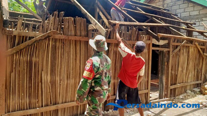Rote Ndao – Babinsa Koramil 01/Ba’a Kodim 1627/Rote Ndao,Sertu Yunus Ketty melaksanakan Karya Bakti bantu warga Bapak Yusuf Souk pasang batako dinding rumah ,Desa Neggoladae Kecamatan Rote Selatan Kabupaten Rote Ndao, Rabu (27/08/2025).