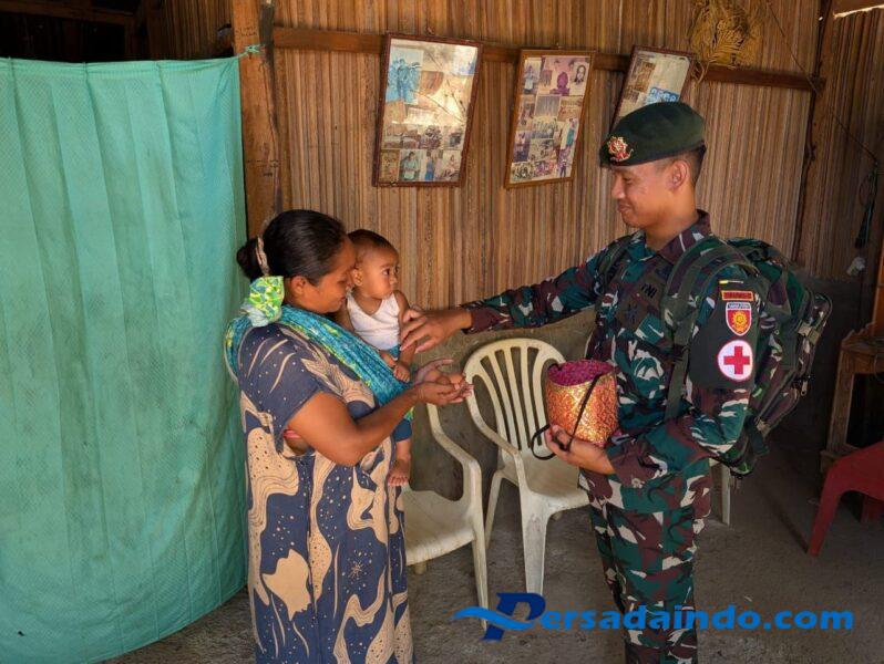 Belu, – Dalam rangka membantu menekan angka stunting di wilayah perbatasan, Satgas Pamtas RI–RDTL Sektor Timur Yonarmed 12 Kostrad melaksanakan kegiatan pembagian telur rebus gratis kepada balita dan ibu hamil. Kegiatan ini digagas oleh Ibu Uli Simanjuntak sebagai bentuk kepedulian terhadap kesehatan dan tumbuh kembang anak di wilayah perbatasan.