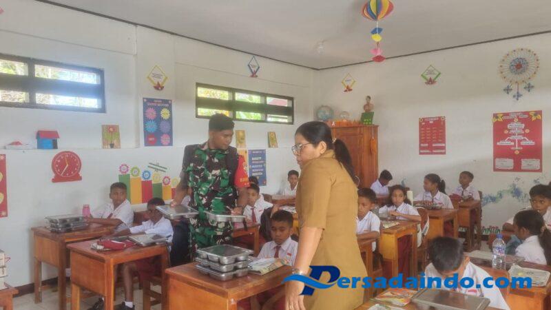 Rote Ndao, 1 Desember 2025 – Program Makanan Bergizi Gratis (MBG) kembali digelar di Kabupaten Rote Ndao dengan melibatkan Babinsa Koramil 1627-01/Ba’a sebagai bagian dari pengawasan dan pendampingan jalannya kegiatan. Pada Senin (01/12), Babinsa Kopda Hendra Gaspersz turun langsung melakukan monitoring proses persiapan hingga distribusi makanan untuk ribuan siswa dan ibu menyusui di wilayah Kecamatan Lobalain.