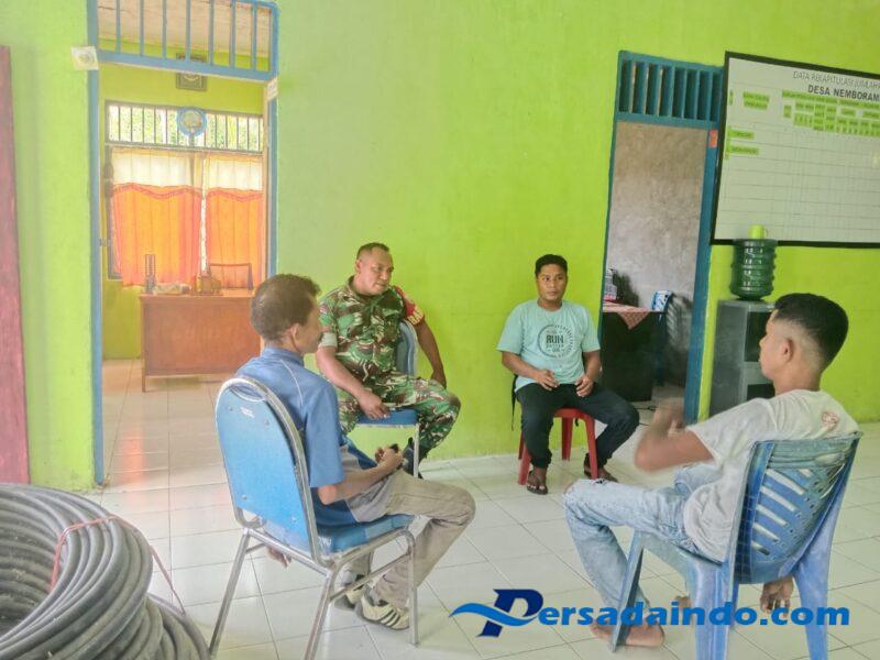 Ende, – Babinsa Koramil 1602-01/Ende, Kopda Kosmas Kerhi, melaksanakan kegiatan Komunikasi Sosial (Komsos) dan Pengamanan Wilayah (Pamwil) bersama aparat dan warga Desa Nemboramba, Kecamatan Ende, Kabupaten Ende, Jumat siang pukul 12.30 WITA.