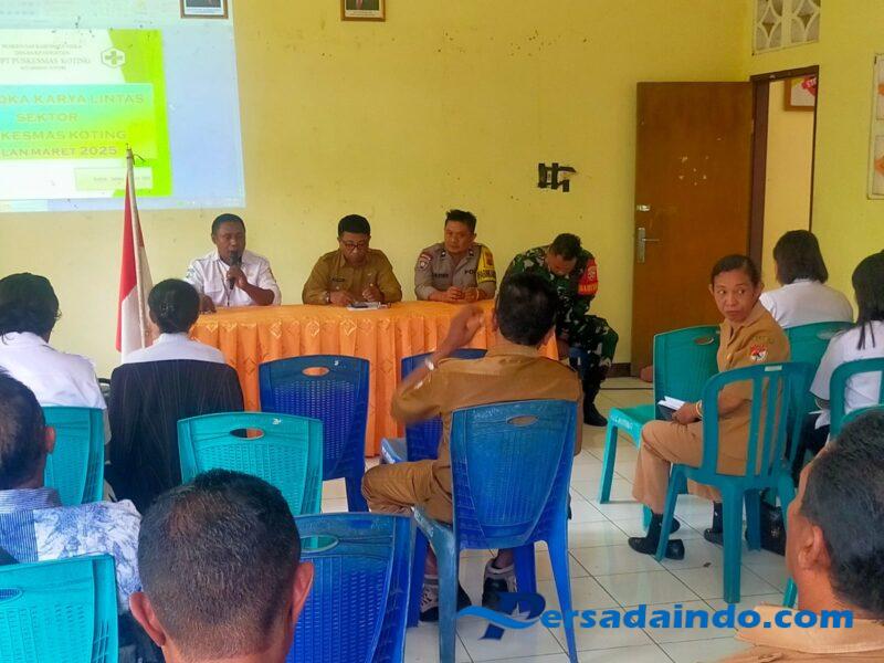 NTT-SIKKA. Kopda Riqab Sulaiman, Babinsa Koramil 1603-01/Alok, menghadiri undangan kegiatan Minilokakarya Lintas Sektor Triwulan 1 Bidang Kesehatan Tingkat Kecamatan Koting bertempat di aula Kantor Camat Koting, Kab. Sikka, Kamis(01/05/2025).