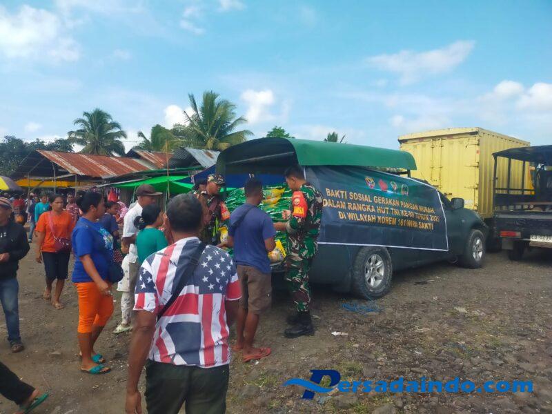 Nagekeo-Pada hari Selasa, 30 September 2025, Babinsa Koramil 1625-03/Boawae Kopda Yoseph Nong Rio bersama Praka Dito Eki Romadhoni melaksanakan kegiatan Gerakan Pangan Murah (GPM) yang berlangsung di Pasar Raja, Desa Raja Timur, Kecamatan Boawae, Kabupaten Nagekeo.