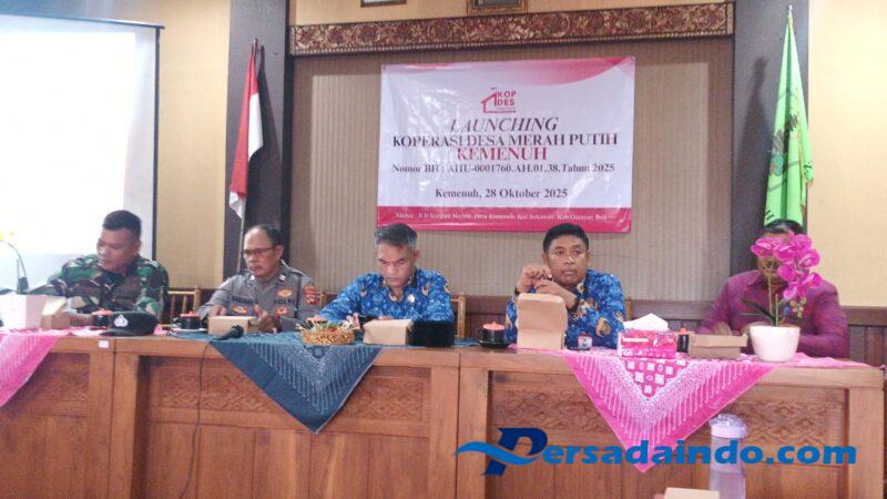 Gianyar – Sukawati, Selasa (28/10/2025) Dalam rangka mendukung program pemerintah daerah dalam peningkatan kesejahteraan masyarakat, Pjs. Batituud Koramil 1616-05/Sukawati Serma I.B. Oka Bisma menghadiri kegiatan Launching Koperasi Merah Putih Desa Kemenuh, yang dibuka secara resmi oleh Kepala Dinas Koperasi dan UMKM Kabupaten Gianyar A.A. Putrawan. Kegiatan tersebut berlangsung di Kantor Desa Kemenuh, Kecamatan Sukawati, Kabupaten Gianyar.