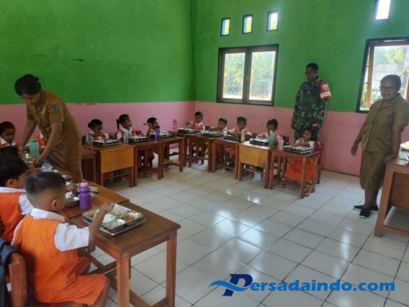Rote Ndao, Kamis (23/10/2025) — Dalam rangka mendukung program pemerintah untuk meningkatkan gizi dan kesehatan anak-anak usia sekolah, Babinsa Koramil 1627-02/Pantai Baru, Koptu Mesak Foeh, melaksanakan pendampingan kegiatan pemberian makanan sehat bergizi yang diselenggarakan oleh pihak ketiga bekerja sama dengan BGN RI, bertempat di Yayasan Sasando Abadi, Desa Ofalangga, Kecamatan Pantai Baru, Kabupaten Rote Ndao.