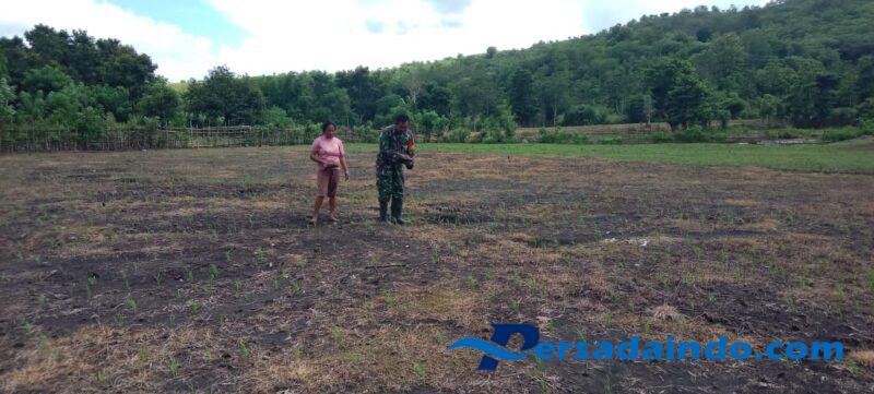 NTT – Sumba Timur. Babinsa Koramil 04/Tabundung, Kodim 1601/Sumba Timur,Sertu Ejiman, melaksanakan pendampingan program ketahanan pangan (Hanpangan) di lahan sawah tadah hujan milik Ibu Yuli, warga Desa Wudipandak, Kecamatan Tabundung, Kabupaten Sumba Timur,Rabu (03/12/2025).