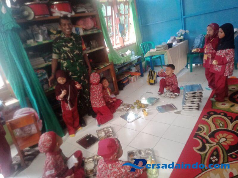 Ende, Dalam upaya mendukung program pemerintah terkait pemenuhan gizi anak-anak usia dini, Koramil 1602-01/Ende bersama TK RA Nurul Hidayah Masjid Raya menggelar kegiatan pembagian makan bergizi gratis, Rabu pagi tadi.