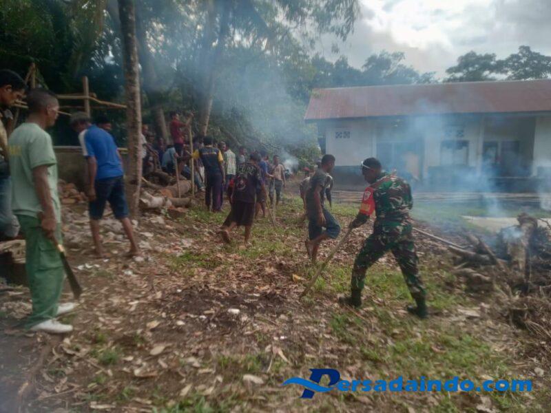 NTT-SIKKA Babinsa Koramil 1603-02/Talibura Kodim 1603/Sikka Pratu Andreas melaksanakan kegiatan karya bakti bersama masyarakat Desa Nataramage, Kecamatan Waiblama, Kabupaten Sikka, Jumat(27/06/2025).