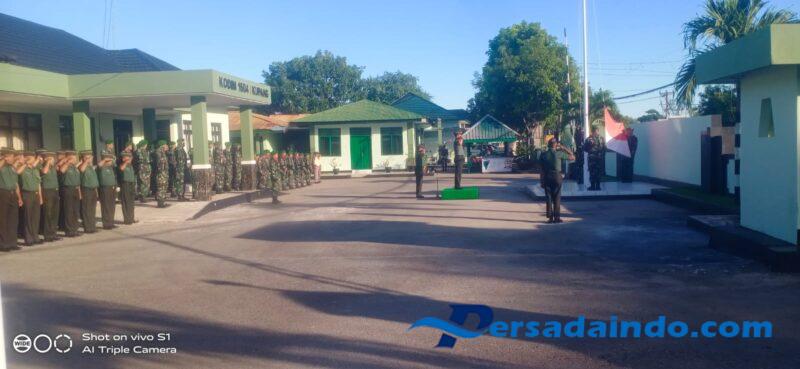 Bertindak selaku Inspektur Upacara (Irup) Perwira Seksi Personalia (Pasi Pers) Kodim 1604/Kupang, Mayor Caj Oktavian Histyanton, dengan Komandan Upacara Kapten Inf Ketut Sabda Andika, dan Perwira Upacara Peltu Toni, diikuti seluruh anggota.