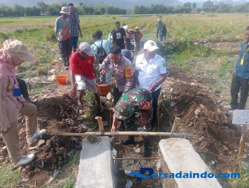 Palibelo,Bima _ Rabu, 10 September 2025, Serka Hasan, Babinsa Desa Tonggorisa Koramil 1608-04/Woha, melaksanakan pendampingan kegiatan peletakan batu pertama pembangunan saluran irigasi tersier. Proyek sepanjang sekitar 290 meter ini merupakan bagian dari Program Percepatan Peningkatan Tata Guna Air Irigasi (P3-TGAI) yang difasilitasi oleh Balai Pengawasan Sungai (BWS) dan bertempat di Kelompok Tani So. Sakara, Desa Tonggorisa, Kecamatan Palibelo.