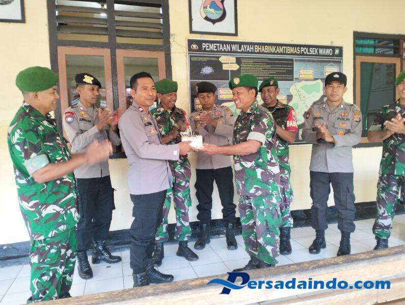 Wawo-Bima, 1 Juli 2025 – Dalam rangka mempererat sinergi dan soliditas TNI-Polri, Koramil 1608-06/Wawo melalui Bati Bhakti TNI Peltu Sahlan beserta anggota melaksanakan kegiatan pemberian ucapan Selamat Hari Ulang Tahun (HUT) Bhayangkara ke-79 kepada anggota Polsek Wawo, Kabupaten Bima. Kegiatan ini berlangsung penuh keakraban dengan mengusung motto POLISI BAIK sebagai wujud dukungan moral untuk Polri dalam memberikan pelayanan terbaik kepada masyarakat.