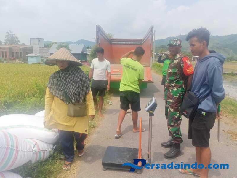 Dompu-NTB. Dalam upaya mendukung ketahanan pangan dan stabilitas harga hasil pertanian, Koramil 1614-01/Dompu Sertu Anwar Babinsa Desa Wawonduru, melaksanakan pendampingan penyerapan gabah oleh Bulog di lahan milik Poktan Doro Mangge Ibu Suharni Desa Wawonduru Kecamatan Woja Kabupaten Dompu, dengan hasil panen 9.351 kg gabah kering. Rabu (09/04/2025).