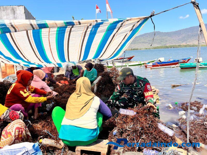 Dompu NTB – Babinsa Desa Kwangko, Koramil 1614-06/Manggelewa, Koptu Arfian Yuliansyah, pada Selasa (12/8/2025) terjun langsung membantu masyarakat Dusun Pulo Bajo, Desa Kwangko, dalam kegiatan panen rumput laut jenis Kantoni. Langkah ini menjadi bukti nyata kepedulian TNI AD dalam mendukung peningkatan kesejahteraan masyarakat pesisir.