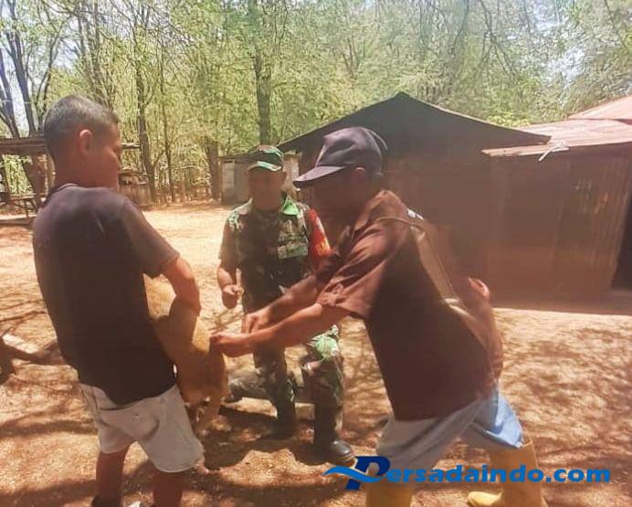 NTT-KEFAMENANU, Selasa, 21 Oktober 2025-Babinsa Koramil 1618-02/Miobar, Serda Seldis Nautani, bersama Koordinator Peternakan Miobar melaksanakan kegiatan vaksinasi rabies pada hewan piaraan, khususnya anjing, di wilayah Desa Fatutasu, Kecamatan Miobar. Kegiatan yang sedang berlangsung merupakan bagian dari upaya preventif untuk mencegah penyebaran penyakit rabies yang berbahaya bagi manusia dan hewan.