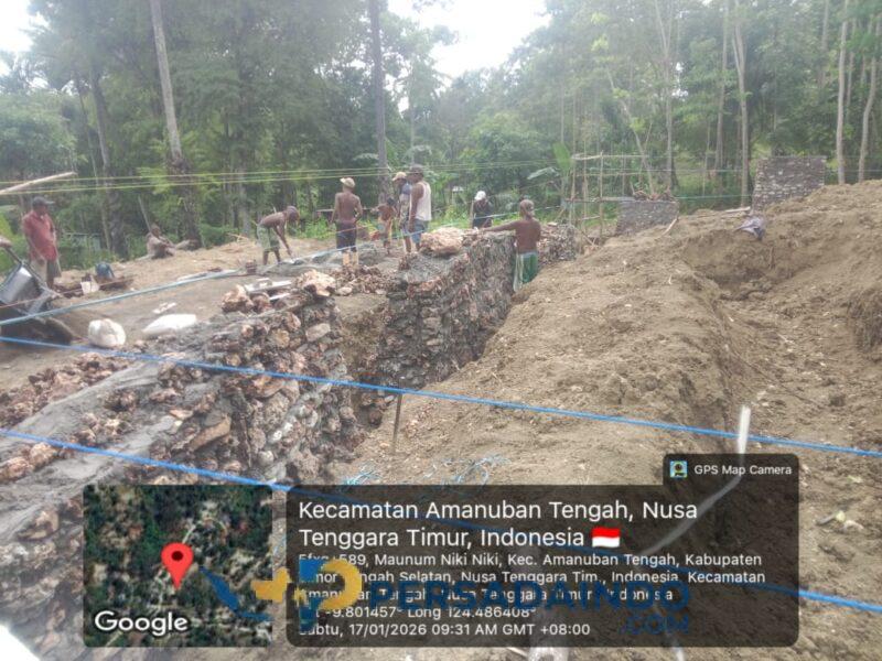 Timor Tengah Selatan — Pembangunan Gerai KDKMP di Desa Maunum, Kecamatan Amanuban Tengah, terus mendapat pengawasan ketat dari jajaran Koramil 1621-02/Amanuban Tengah, Babinsa Pratu Fatris Tanoen turun langsung ke lokasi untuk memastikan pekerjaan konstruksi berlangsung sesuai rencana, Sabtu (17/01/2026).