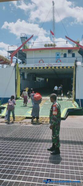 Pada kesempatan tersebut, Babinsa melakukan pemantauan dan pengamanan saat Kapal Motor Penumpang (KMP) Kalibordi tiba di Pelabuhan Feri Pantai Baru pada pukul 12.20 Wita. Setelah proses bongkar muat penumpang dan kendaraan selesai, kapal kembali berlayar menuju Pelabuhan Bolok Kupang pada pukul 13.15 Wita.