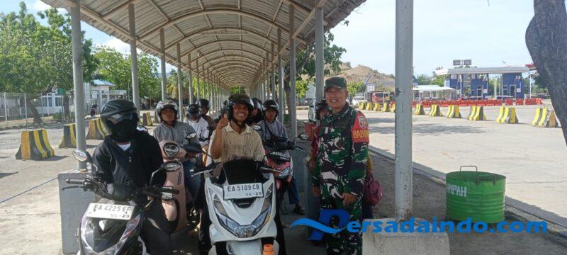 Sumbawa Barat – Dalam rangka menjaga keamanan dan ketertiban di wilayah binaan, Babinsa Desa Senayan Koramil 1628-04/Poto Tano, Sertu Chaeruddin, melaksanakan kegiatan Pengamanan (PAM) di Pelabuhan Penyeberangan Poto Tano pada Rabu(26/11/2025) pagi pukul 09.10 WITA.