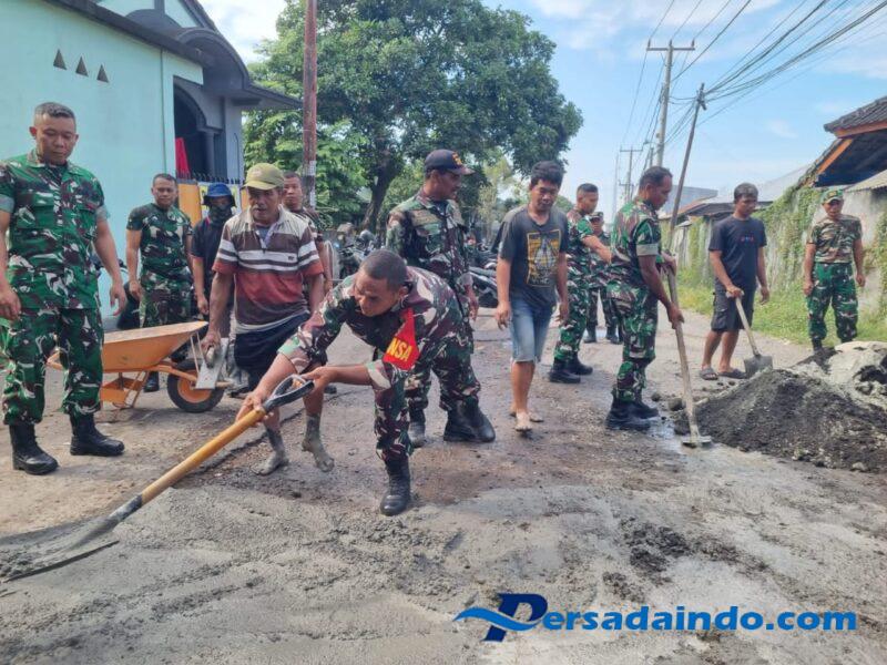 • Koramil Aikmel dan Warga Gotong Royong Perbaiki Jalan Berlubang di Belakang Pasar
